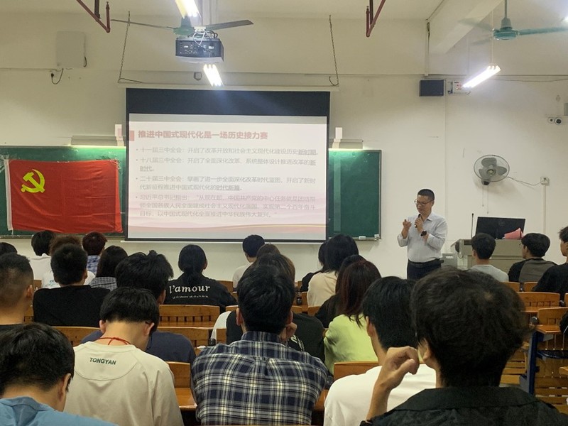 本次“思政第一课”,罗庚兴带领同学们回顾了中国共产党领导对中国式现代化的探索历程和历史启示。教育引领广大学生凝心聚力、奋发进取以进一步全面深化改革为动力,深入学习党的二十届三中全会精神,坚定不移高举改革开放旗帜,以中国式现代化全面推进中华民族伟大复兴。