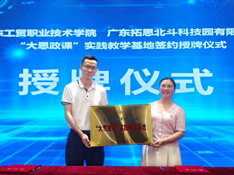 北斗创新基地建设运营单位——广东拓思北斗科技园有限公司与我校马克思主义学院隆重举行了双方共建“大思政课”实践教学基地签约授牌仪式。广东拓思北斗科技园有限公司负责人鲜凯、副总经理欧图南与其他工作人员,和我校50余名师生共同参加了共建签约授牌仪式。在双方的共同见证下,欧图南和刘凤梅在合作协议上签字,鲜凯和宁晓菊共同为基地揭牌。