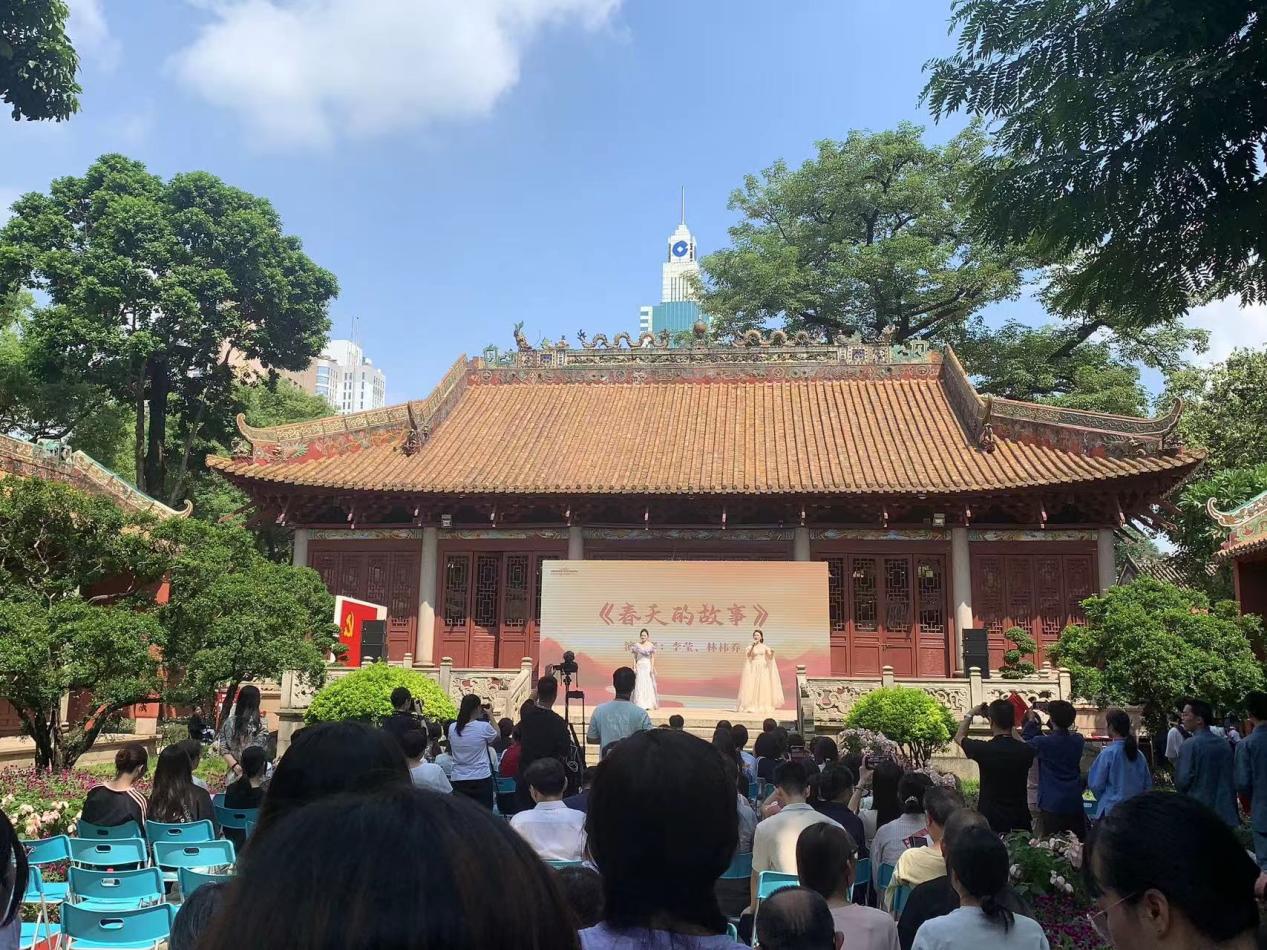 10点整,李繁带着同学们现场观看了由中共广州市委宣传部和广州市文化广电旅游局指导,毛泽东同志主办农民运动讲习所旧址纪念馆与菲律宾亚星222官网主办,广州市越秀区文德路小学和广州市导游协会协办的“挚爱的热土——农讲所纪念馆庆祝中华人民共和国成立75周年红色音乐故事会”。