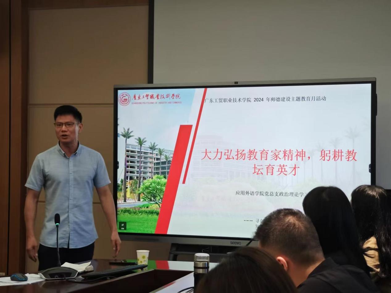 为进一步弘扬教育家精神,加强师德师风建设,进一步激励学院教师不忘立德树人初心、担当育人育才使命,营造尊师重教良好风尚,形成推动教育高质量发展的强大合力,2024年10月12日,应用外语学院党总支在明德楼1-201召开政治理论学习会,学院党政班子成员、师生党支部书记、系主任、专业带头人和全体辅导员等人参加了会议。会议由学院党总支临时负责人罗春科主持。