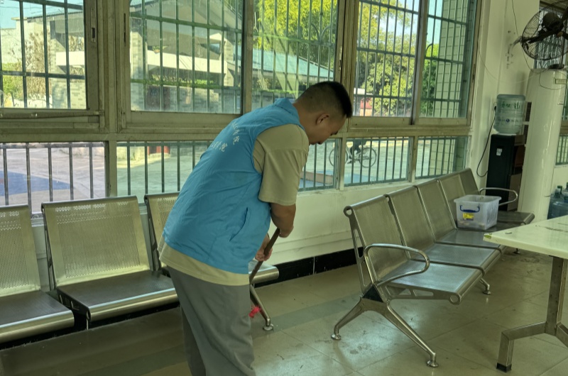 志愿者打扫颐康服务站