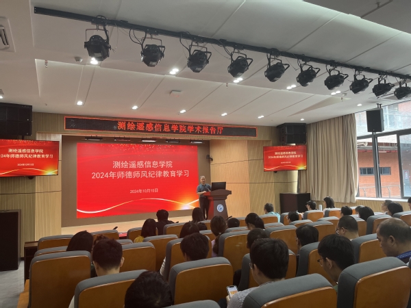 为深入学习贯彻党的二十大和党的二十届二中、三中全会精神,大力弘扬教育家精神,不断健全师德师风建设长效机制,着力加强新时代教师队伍建设发展,10月15日下午,测绘遥感信息学院在白云校区博学楼5楼测绘学院学术报告厅开展了2024年师德建设主题教育月活动。测绘学院党总支书记、院长速云中、党总支副书记李元以及学院全体教职工出席本次会议,会议由速云中主持。