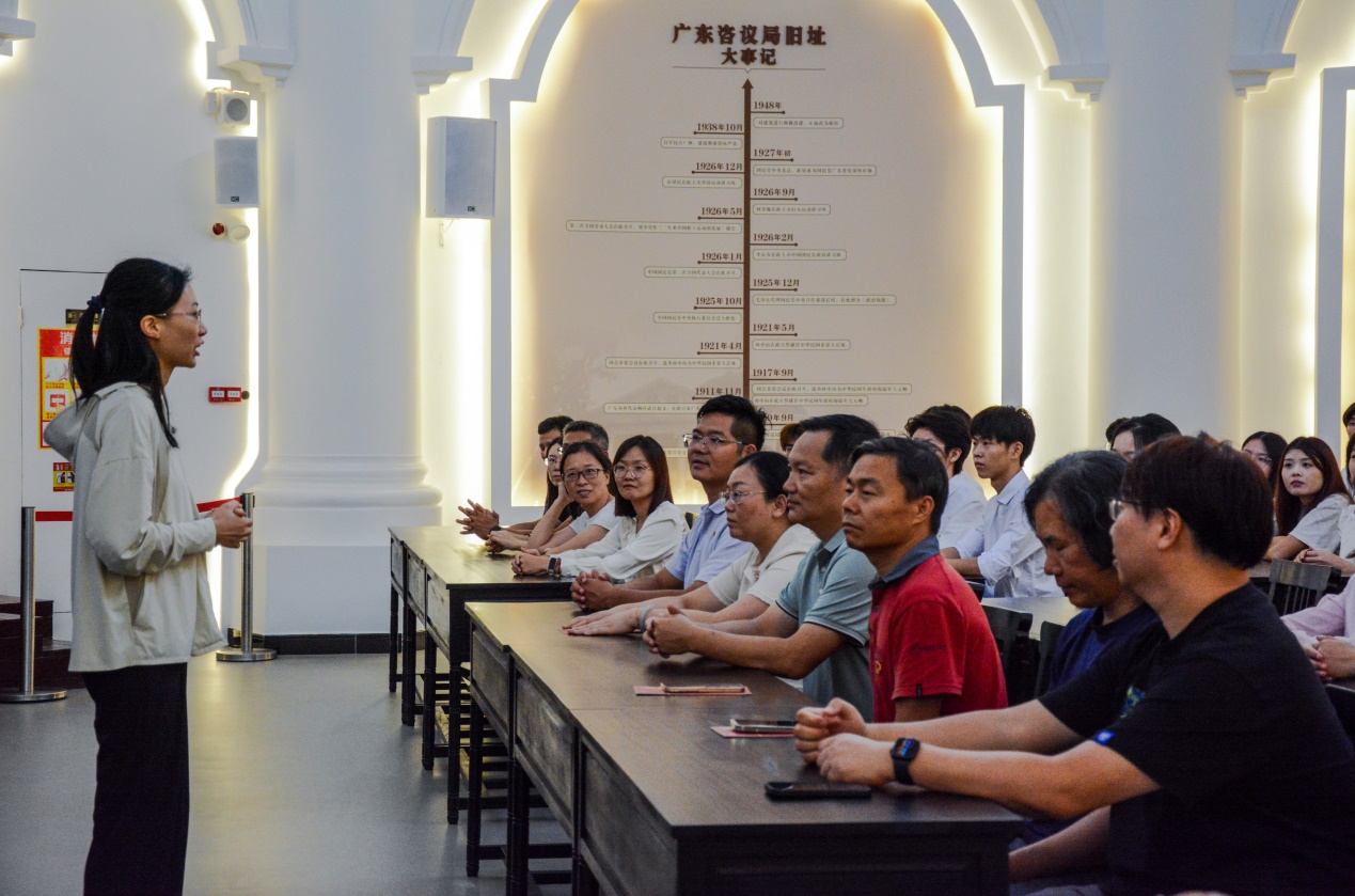 参观完主要的馆藏内容,全体党员同志来到了博物馆的会议室。坐在原广东咨议局所在的会议室,白墙黑椅,同志们顿感庄严肃穆。计算机学院党总支书记张宁围绕当前学习贯彻党的二十届三中全会精神热潮,以及习近平总书记在全国教育大会上的重要讲话精神,深入浅出,以小见大,或阐发,或勉励,对与会人员进行了一次别开生面的教育。随后,教师第一党支部书记周宇、学生第一党支部书记古民华和学生第二党支部书记俞雪娇等三位书记,也上台进行了宣讲。通过现场党课学习,同志们对党的二十届三中全会精神有了更加深入的认识,对教育强国建设有了更好的理解,进一步坚定了理想信念,明确了奋斗方向。