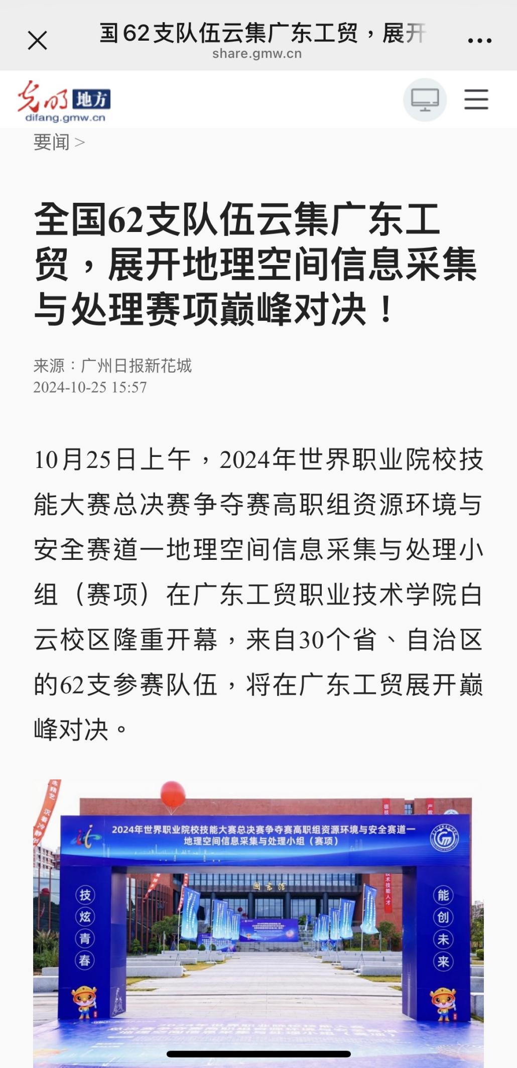 2.光明网:全国62支队伍云集广东工贸,展开地理空间信息采集与处理赛项巅峰对决!