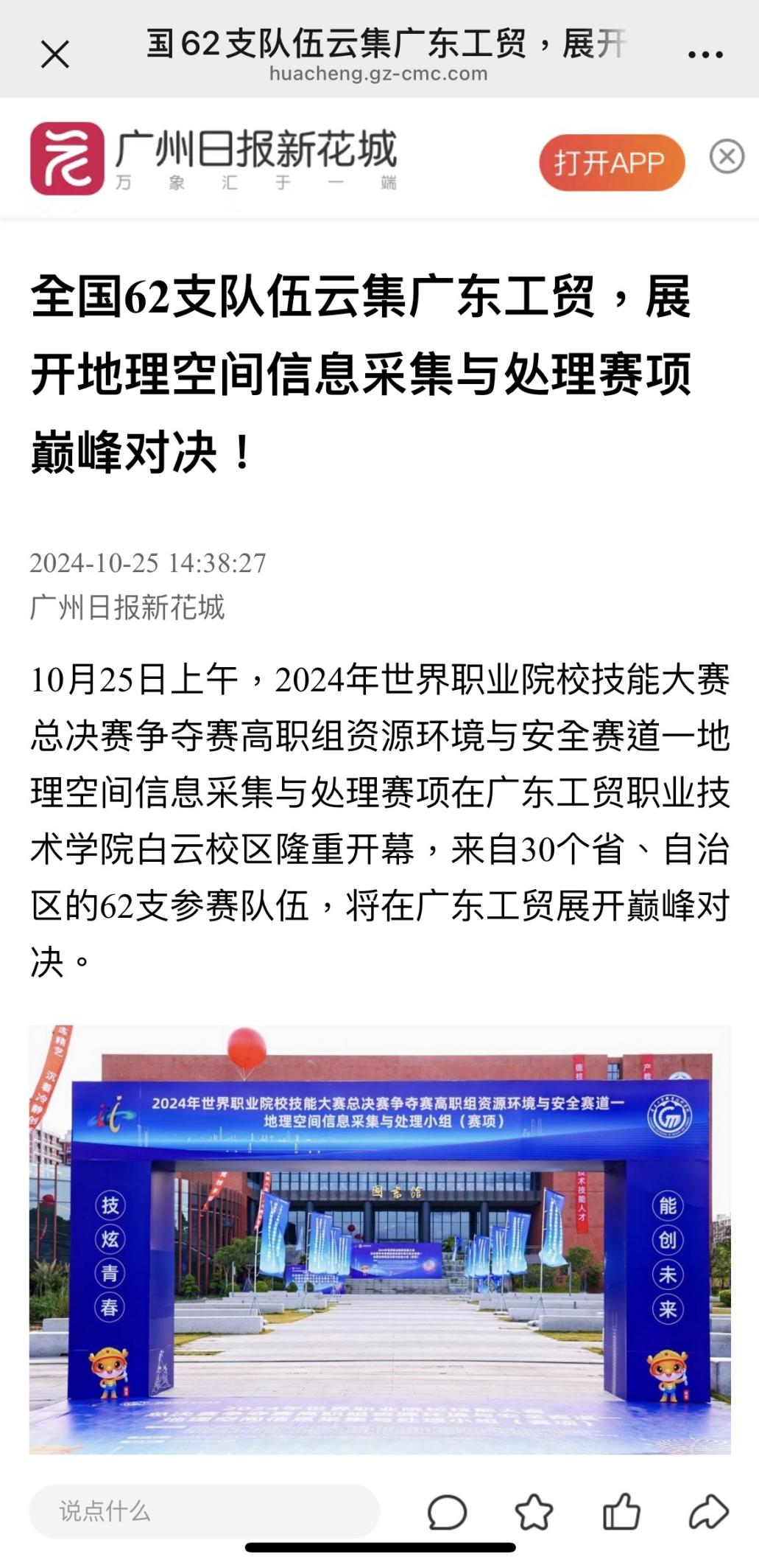 1.广州日报新花城:全国62支队伍云集广东工贸,展开地理空间信息采集与处理赛项巅峰对决!