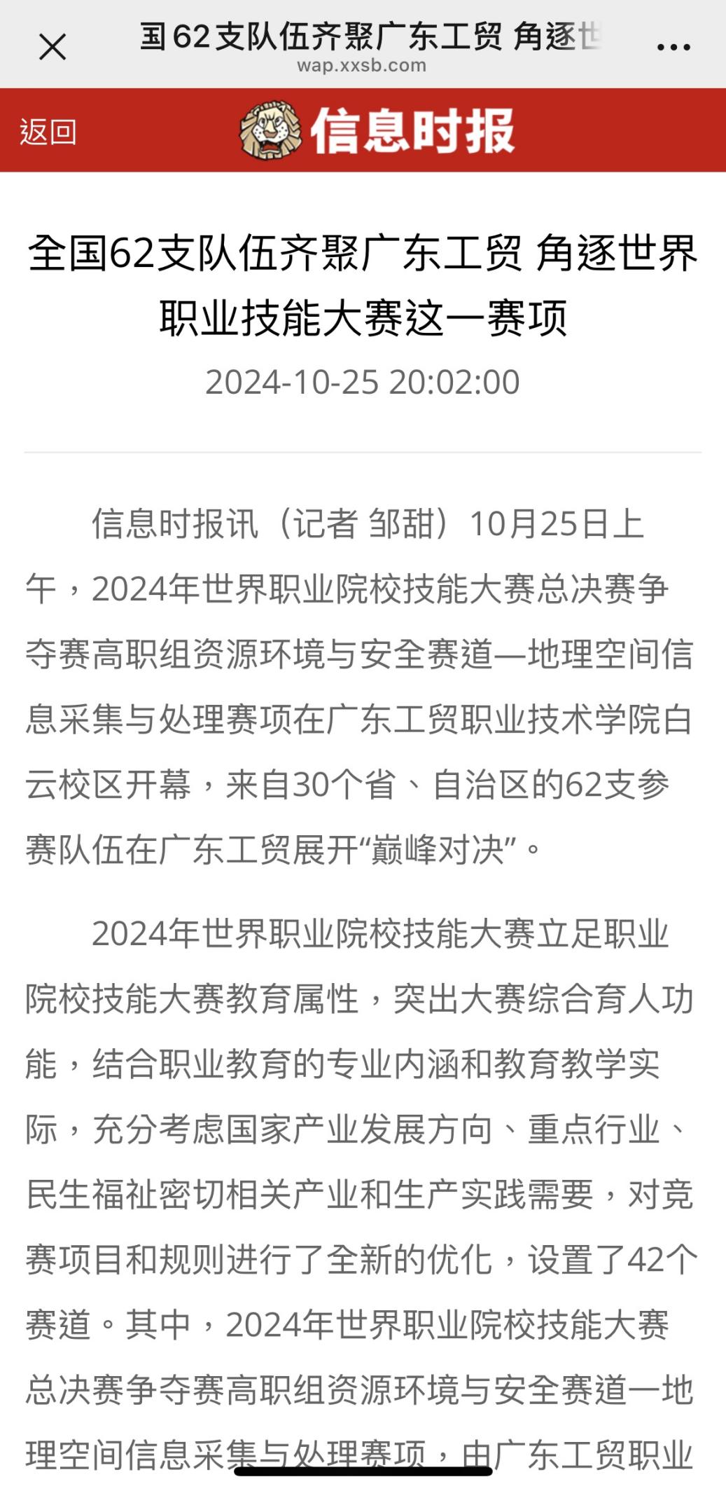 3.信息时报:全国62支队伍齐聚广东工贸 角逐世界职业技能大赛这一赛项