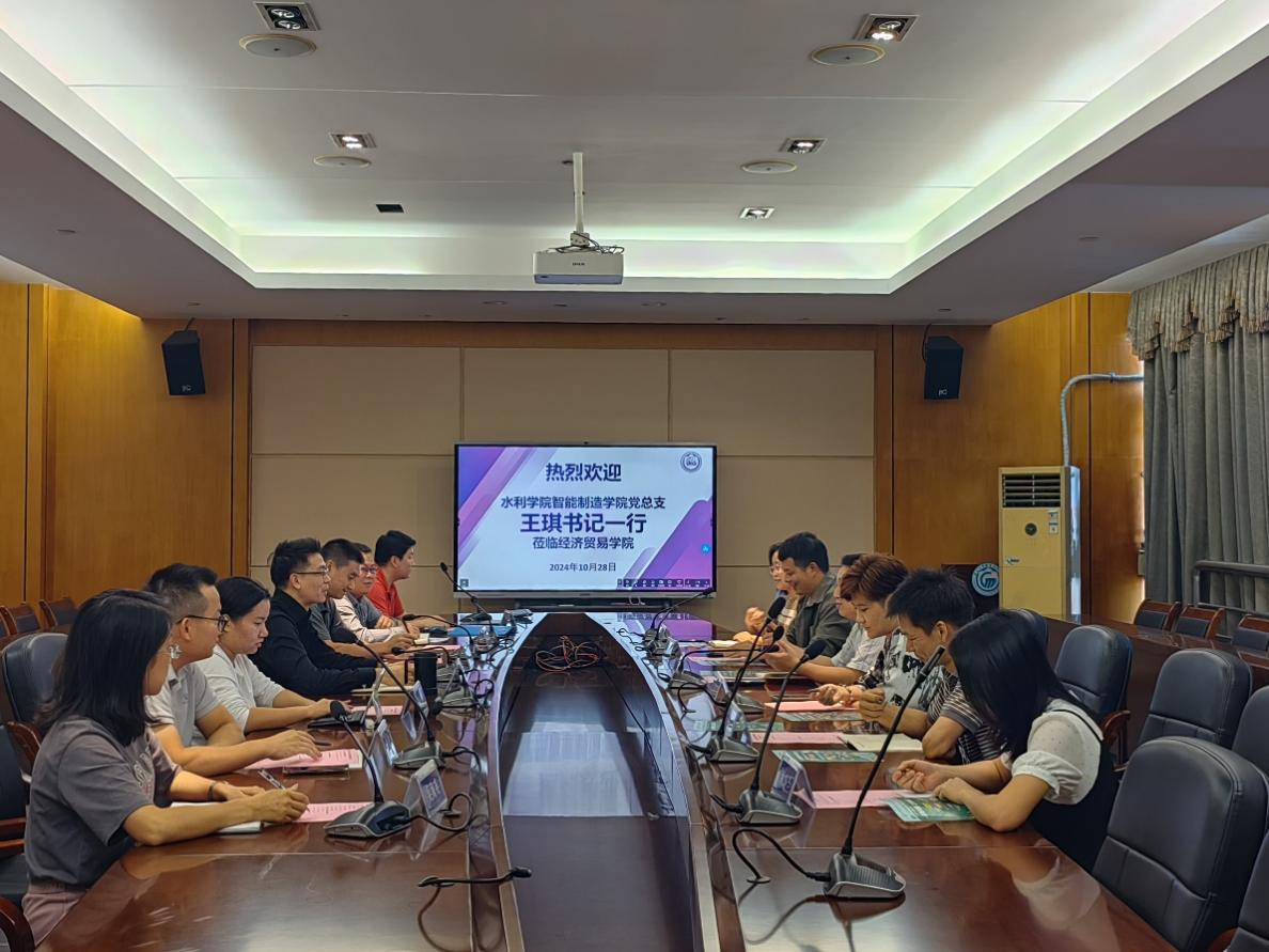 10月28日下午,广东水利电力职业技术学院智能制造学院党总支书记王琪,辅导员陈斯贝、李慧平、谭淑良、张浩、林晓兰、葛文霞一行7人,赴我校经济贸易学院开展学习交流活动。经贸学院党总支书记李繁,经贸学院党总支副书记龚云,学工办主任黄小奇,学生党支部书记吴海英、陶智祥,经贸学院学生组织指导老师章少重等领导老师热情接待来访,双方于明德楼1-201会议室举行座谈会,会议由李繁主持。