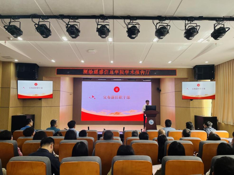 10月29日下午,测绘遥感信息学院在博学楼2区5楼学术报告厅召开全体教职工会议暨新提拔干部任职宣布会。学校党委书记何汉武、高教研究与发展中心主任速云中,学院党总支书记李元、院长高照忠及全体教职工参加会议。会议由组织宣传统战部专员甘乃添主持。