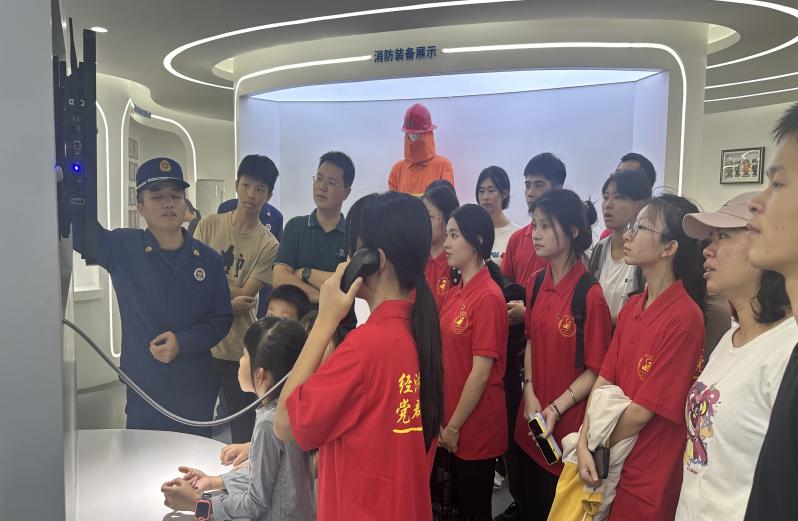活动开始前,支部党员集中学习了党的二十届三中全会精神以及习近平总书记关于安全生产重要论述和重要指示批示精神。在消防站,工作人员带领党员近距离参观了消防知识展览馆、消防专用车辆、随车器材和消防装备,同学们对消防救援车辆、救援器材以及消防员防护装备的使用方法进行了详细的讲解,了解了消防车的随车器材及主要功能用途,掌握了消防安全常识、防灭火知识与操作技巧,熟悉了日常生活中如何防止火灾的发生、发生火灾时怎么办、如何正确报警等消防常识。随后,同学们开展了“零距离”体验式学习活动,穿上防护装备、拿起消防工具进行体验,并进行了模拟逃生。