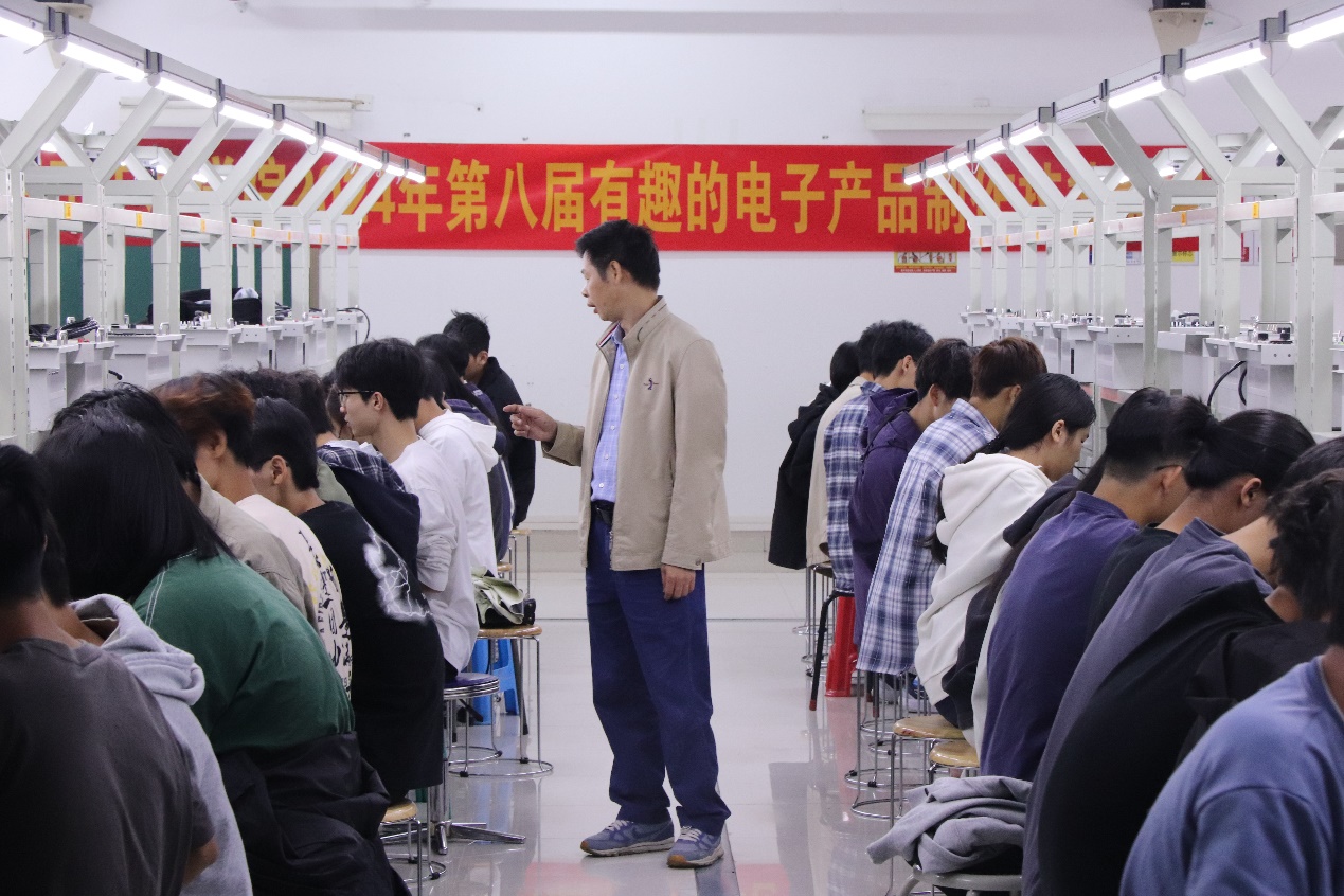 为深化高等职业教育改革,扎实推进“双高”院校和创新强校建设,大力实施综合素质育人工程,展示学生技能学习成果,提升学生实践能力,2024年11月19日下午,由汽车工程学院党总支部主办、智能网联汽车系承办、汽车工程学院团委、学生会协办的汽车工程学院2024年第八届有趣的电子产品制作技能竞赛决赛在行知楼404教室举行,侯益坤主任、刘艳萍老师、黄丽英老师担任本次竞赛的评委。