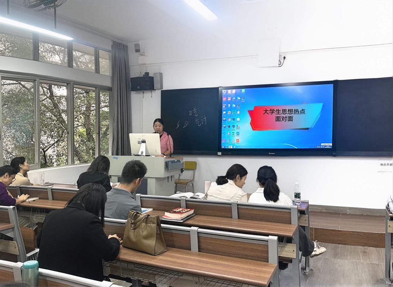 教育部社科司指导组织编写的《大学生思想热点面对面》,是守正创新推动思政课建设内涵式发展的一项重要举措,为推动思政课教学范式和话语叙事方式转变提供了重要借鉴。2024年11月19日下午,马克思主义学院围绕如何用好《大学生思想热点面对面》,提升高校思政课教学针对性和吸引力举行研讨会,学院党总支书记张巧平、院长刘凤梅和全体思政课老师参加了交流研讨。