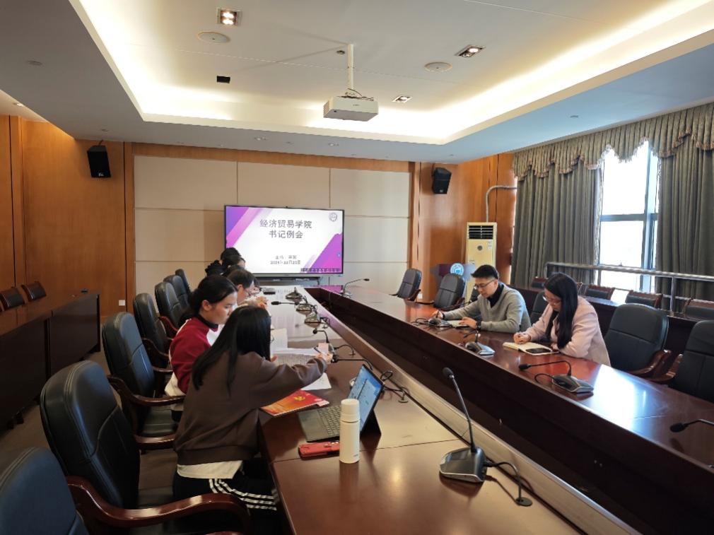 11月26日下午,经济贸易学院召开本学期第二次书记例会,经贸学院党总支委员,各师生党支部书记,专职组织员参加会议,会议由经济贸易学院党总支书记李繁主持。