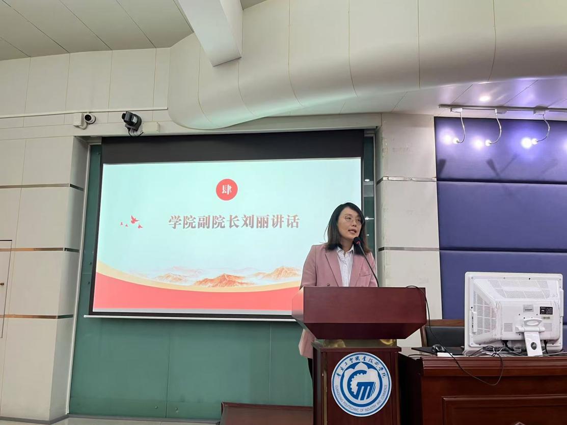 刘丽作表态发言,她表示将在学校党委以及学院党总支的领导下,以身作则,深化产教融合,加强校企合作;注重学生的综合素质培养,培养德才兼备的人才,在学科竞赛、实习实践等工作中开花结果,为学院发展作出更大贡献。