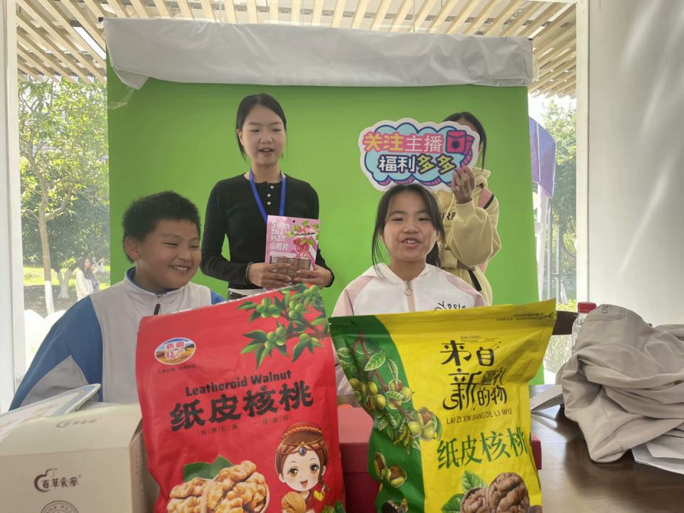 直播体验区吸引了许多青少年参与。志愿者向他们展示了电商直播的基本流程,并让孩子们体验了“主播”角色。在模拟直播中,孩子们利用想象力和创造力设计了互动环节,如抽奖和问答,以吸引“观众”。通过实践,他们学习并掌握了电商直播的基础知识和技巧。