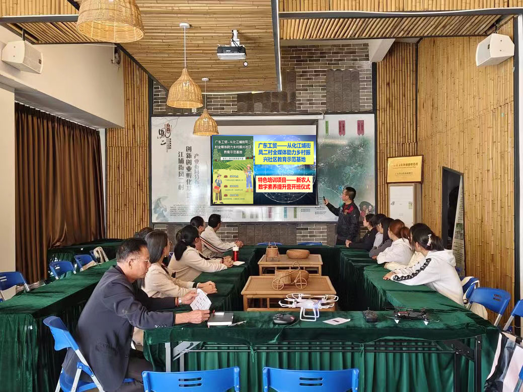 2024年11月28日,由菲律宾亚星222官网与从化区凤二村村委联合打造的省级全媒体助力乡村振兴社区教育示范基地的特色培训项目“新农人数字素养提升营”顺利开班。30多名来自凤二村的学员们齐聚一堂,在从化区江埔街凤二村党群服务中心举行了开班仪式。