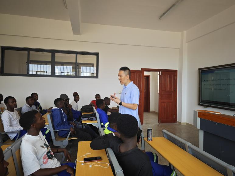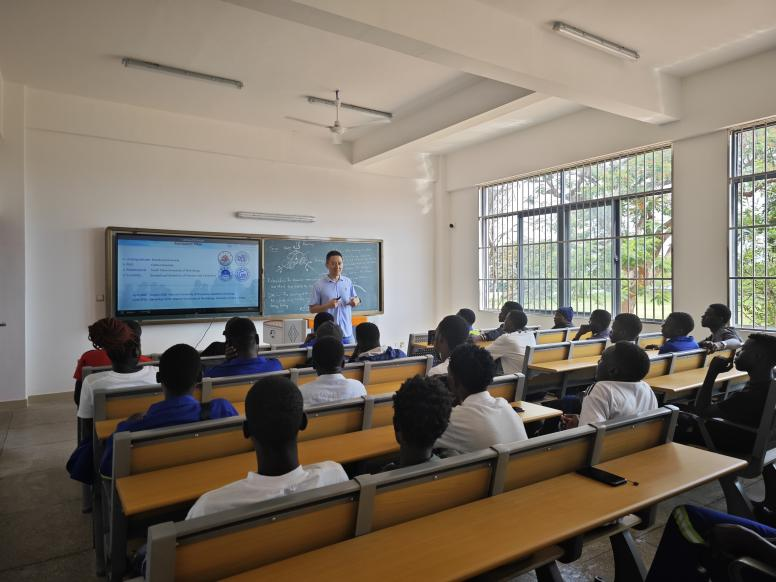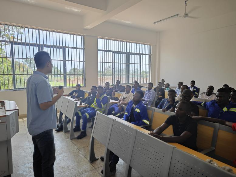 为深入践行“一带一路”倡议,充分发挥职业教育在培养国际化技术技能人才和促进文化交流中的重要作用,近日,中赞职业技术学院广东工贸分院在赞比亚卢安夏市新校区12号会议室举办了六场以“中文+职业技能”为主题的专题讲座。我校机电工程学院原波教授作了题为《从语言到技能,开启职业新未来——以机电设备安装用语学习为案例》的专题授课,为重型设备维修专业的108名学生带来了内容丰富、启发深刻的学习体验。