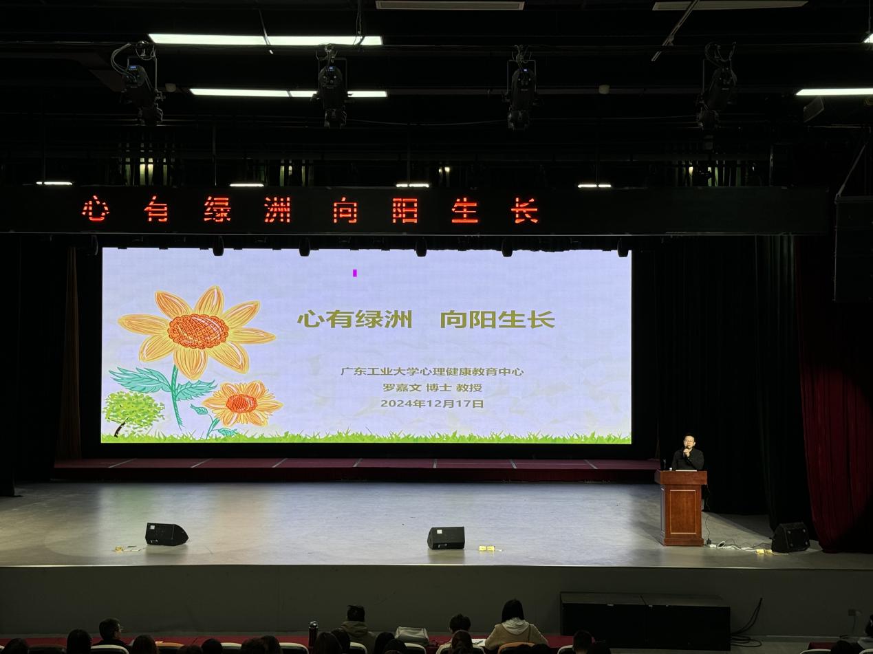 为了帮助同学们更好了解自我、舒缓压力,提升心理调适能力,享受青春,享受大学生活,1217日下午,应用外语学院特别邀请了广东工业大学心理健康教育中心主任罗嘉文教授在子弘楼4楼报告厅给大家讲授了以“心有绿洲,向阳生长”为主题的心理健康讲座,讲座由应用外语学院党总支书记罗春科主持。