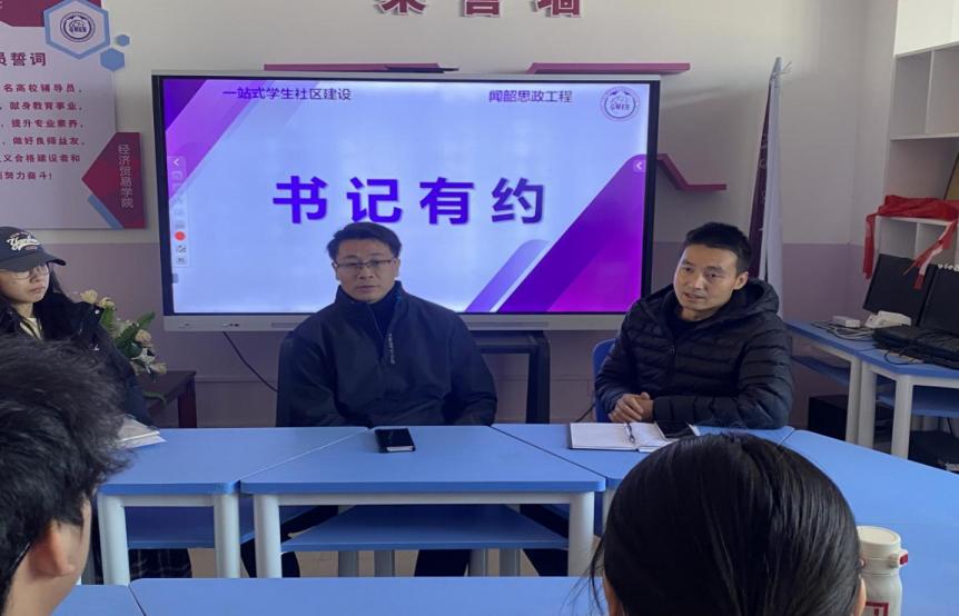 为深入学习贯彻党的二十届三中全会精神,落实立德树人根本任务,扎实推进学院“闻韶工程”及“一站式”学生社区建设,倾听学生诉求和建议,更好服务学生,2024年12月19日下午,经济贸易学院在宿舍楼16栋8楼辅导员工作室开展“书记有约”座谈会。经贸学院党总支书记李繁、党总支副书记龚云、辅导员莫雯嘉、部分学生党员和发展对象参加本次座谈会。
