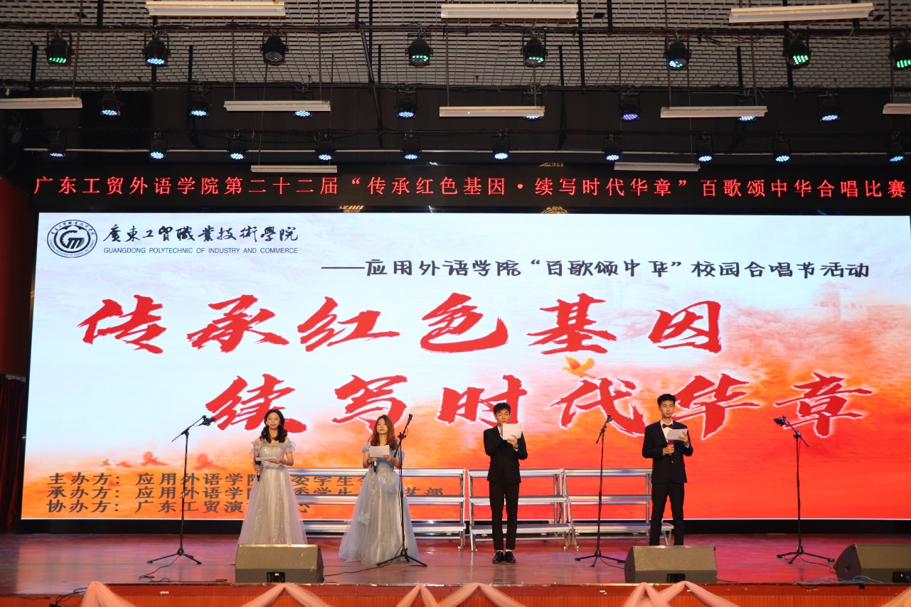 为热烈庆祝中华人民共和国成立75周年,全面贯彻习近平新时代中国特色社会主义思想,深入贯彻党的二十届三中全会精神,汇聚自信自强、团结奋进的强大正能量以及提升学生荣校爱校的意识,激发爱国情怀,弘扬报国之志,引导广大青年大学生深刻感悟习近平总书记的殷殷嘱托,践行“请党放心,强国有我”的铮铮誓言,增强“四个意识”、 坚定“四个自信”、做到“两个维护”,应用外语学院以“传承红色基因,续写时代华章”为主题,于2024年12月19日在白云校区演艺厅顺利组织开展第二十二届“百歌颂中华”校园合唱节活动院级比赛。