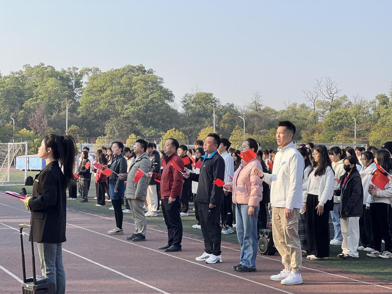 仪式正式开始,英姿飒爽的国旗护卫队迈着整齐有力的步伐护送国旗入场。在激昂的国歌声中,五星红旗冉冉升起,全体师生面向国旗肃立,行注目礼,齐唱国歌,展现出师生们对祖国的无限热爱和崇高敬意,也为新的一年拉开了充满希望与活力的序幕。