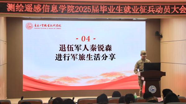 本次动员大会的成功召开,不仅让毕业生们对当前的就业形势和征兵政策有了更深入的了解,通过退伍大学生的分享,也让他们进一步坚定了投身国防事业的决心和信心。接下来,测绘遥感信息学院将继续为毕业生提供更多优质的就业征兵指导服务,推动学院毕业生实现高质量充分就业!