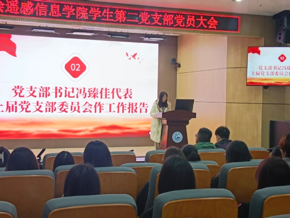大会在庄严的国歌声中开幕,冯臻佳代表上一届支部委员会作工作报告,全面回顾并总结党支部的工作情况,指出存在的问题和不足,明确今后努力的方向。