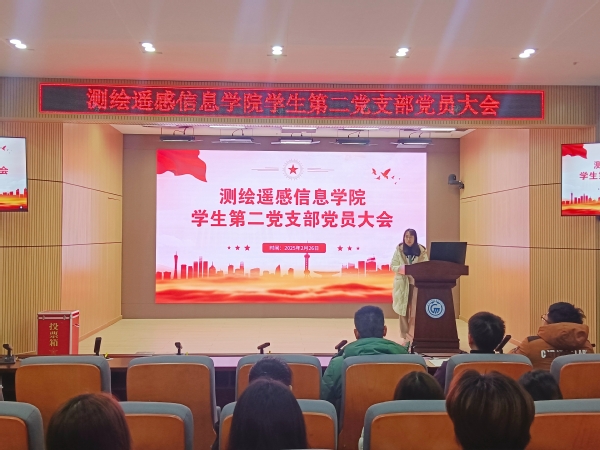 2月26日下午,测绘遥感信息学院学生第二党支部在测绘学院学术报告厅召开全体党员大会。会议由党支部书记冯臻佳主持,教师党员刘楚泽、李璐、李智贤、吴安妮、柴新宇以及全体学生党员共36人参加大会。