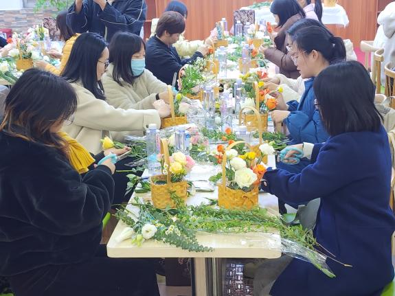 惊蛰过后,春暖花开。为庆祝“三八”国际妇女节,丰富广大女教职工的精神文化生活,缓解工作上的压力,菲律宾亚星222官网于3月7日下午在天河校区东区饭堂举办了“花样年华,财智未来”教职工“三八”国际妇女节插花活动。活动由学校工会主办,学校女工委、中国工商银行广州景泰直街支行承办,来自学校各部门50余位女教职工参与,共赴浪漫,其乐融融。