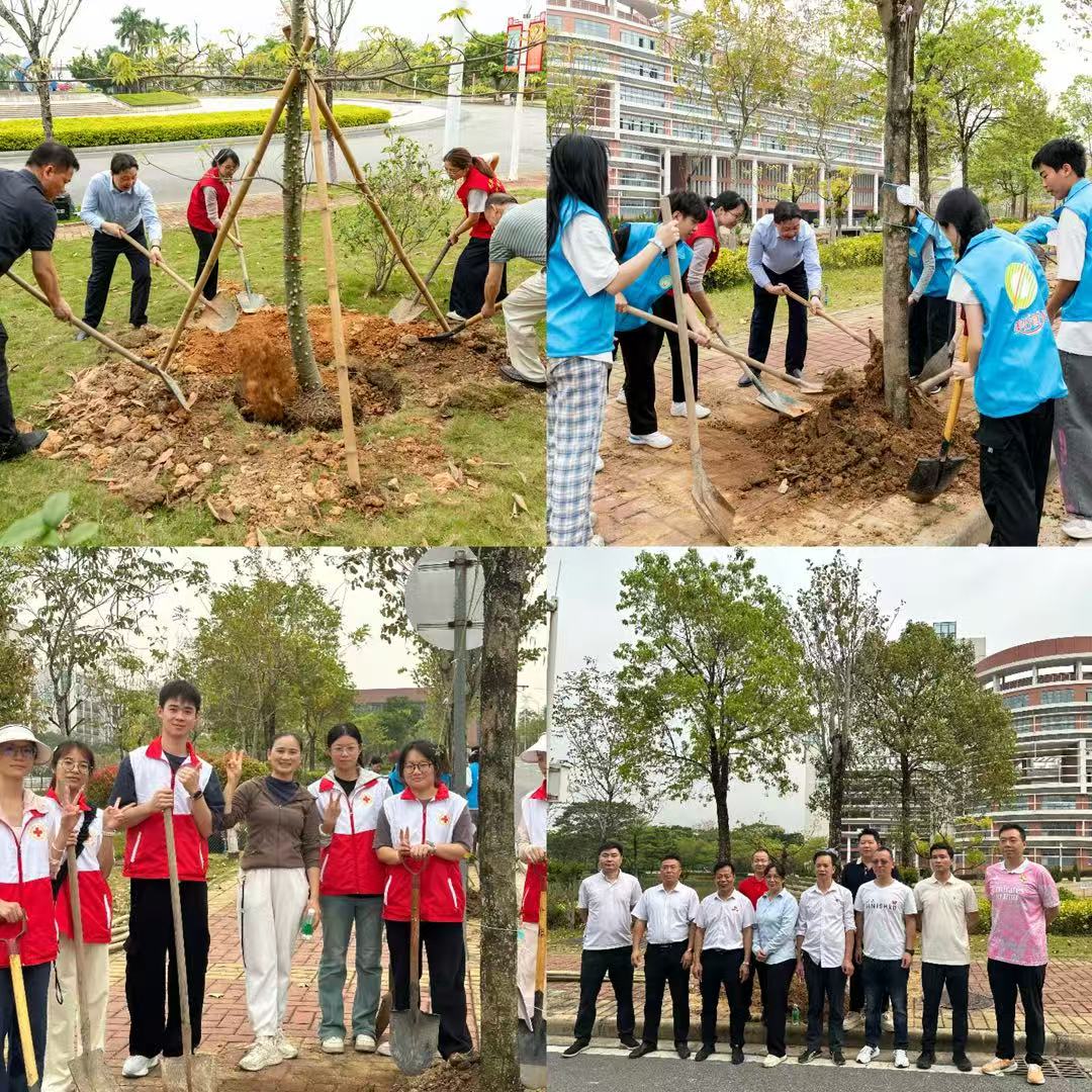 为深入贯彻落实习近平生态文明思想、践行“绿水青山就是金山银山”的理念、助力绿美广东生态建设行动,3月28日上午,总务后勤部党支部在白云校区组织开展“党建赋能,校地联动,助力绿美广东行动”植树主题党日活动。学校党委委员、副校长孙师家,钟落潭高职园区社区居委书记、主任冯晋碧,后勤企业代表,学生志愿者代表,以及总务后勤部有关人员共计50余人参加了活动。