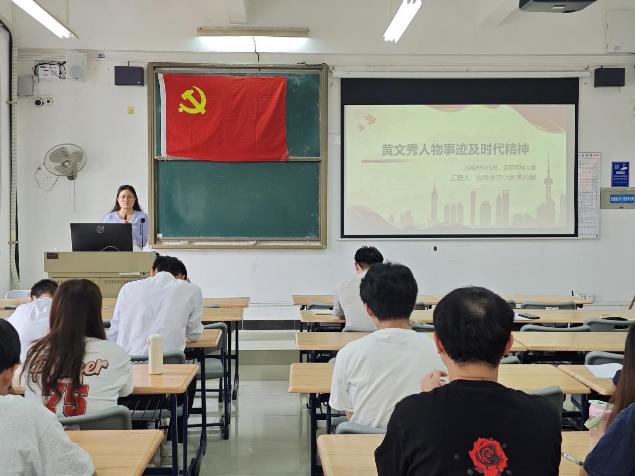 陈碧娴同志分享黄文秀人物事迹及时代精神。青年学子要以黄文秀为榜样,珍惜学习时光,努力学习科学文化知识,提高自身素质和能力,探寻“时代楷模”,汲取精神力量,积极参与社会实践活动,将所学知识运用到实际中,为乡村振兴和社会发展贡献自己的智慧和力量。