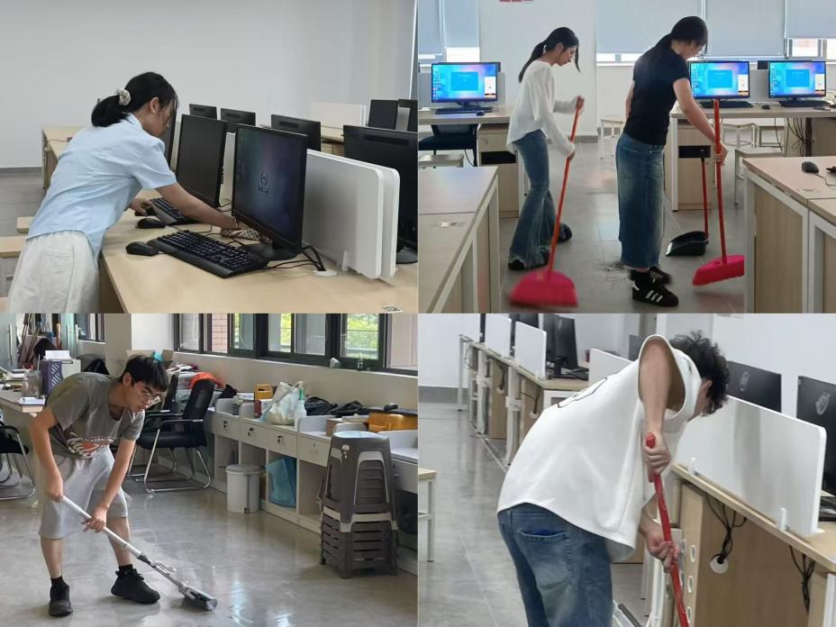 此外,学院党总支还组织了学员开展社会实践活动,包括对博学楼2区教室进行卫生打扫以及在博学楼教学区域开展学风督察志愿活动。不仅锻炼了学员的实践能力,还进一步增强了服务意识和团队合作精神,用实际行动为同学们营造良好的上课环境与氛围。