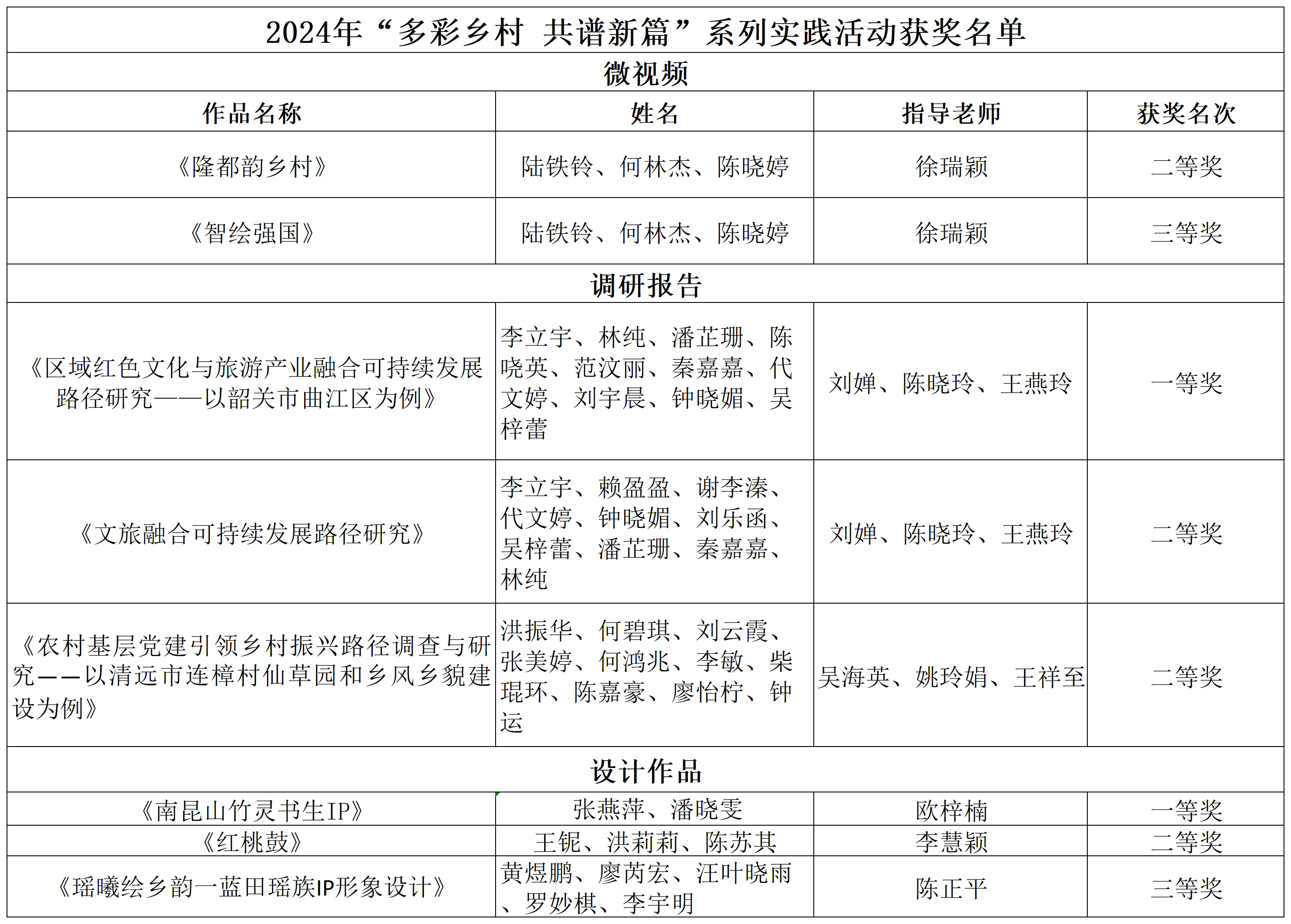 2024年“多彩乡村 共谱新篇”系列实践活动获奖情况