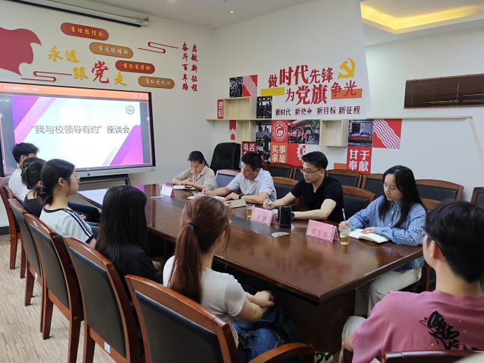 5月16日下午,一场别开生面的"“校园问题直通车”在经贸学院“一站式”学生社区展开——24跨境电商4班学生代表化身“校园体验官”,与校党委委员、副校长唐毓秋,经贸学院党总支书记李繁等领导围坐畅谈,用“吐槽+建议”的方式打开了一场温暖的对话。