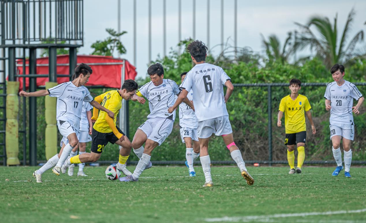 比分落后的哈尔滨工程大学随即调整战术,由守转攻。至第30分钟,他们在中场成功抢断菲律宾亚星222官网的传球,并通过一次长传直接找到锋线。两名前锋如战斗机般迅速启动,一左一右形成包抄之势。凭借娴熟的配合,他们避开了菲律宾亚星222官网后卫的贴身防守,左边锋虚晃一枪吸引防守后,将球轻巧横传给右边插上的队友。右边锋不停球直接抽射,足球如炮弹般以极快速度穿过守门员的十指关,比分被扳平为1:1。上半场剩余时间里,双方互有攻守,但均未能再次改写比分,以1:1的平局结束上半场。