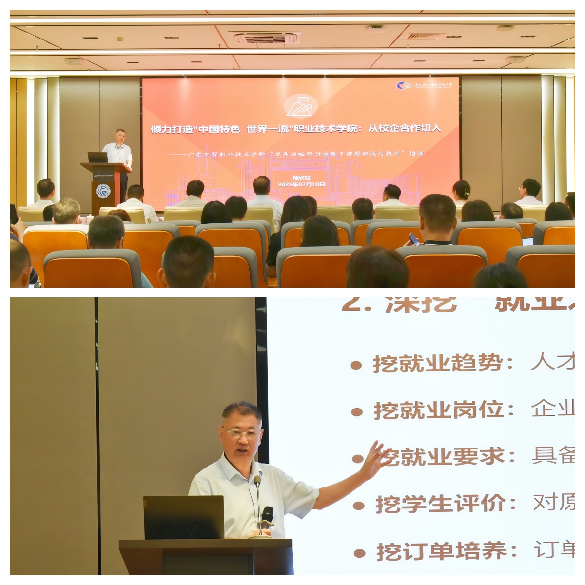 培训班首日邀请了广东轻工职业技术大学校长杨欣斌作专题讲座,杨欣斌以《倾力打造“中国特色 世界一流”职业技术学院:从校企合作切入》为题,深入研读了各阶段的国家及省、市的相关校企合作政策文件,分享了国内外多所一流大学的校企合作经验,并从如何提升校企合作能力、如何内化关键办学能力、校企合作的工作要求等几方面为参训干部提供了提升校企合作成效的具体指导。