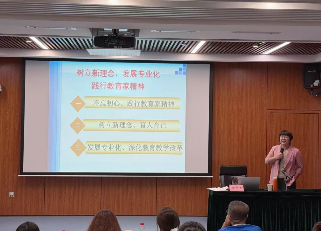 破冰活动后,邓兰兰主任以“树立新理念、发展专业化、弘扬教育家精神”为主题开展专题授课。她从“不忘初心、践行教育家精神”“树立新理念、育人育己”“发展专业化、深化教育教学改革”三个维度,结合丰富的案例和实践经验,为学员们解读了新时代思政课教师的使命担当与专业发展路径。她强调,思政课教师要不断提升自身的政治素养和理论水平,将价值引领融入知识传授和能力培养全过程,真正做到“经师”与“人师”相统一。