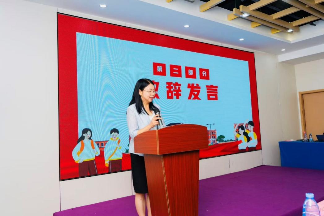 在“合作院校领导发言”环节,彭枚芳作为学校代表上台致辞,话语中满含对学子的期许与对校企合作和产教融合的深度思考。她首先向广州空港跨境电商园及入驻企业致以衷心感谢,强调这是同学们将知识转化为实践的最佳舞台。致辞中,彭枚芳详细介绍了广州空港经济区的产业优势,特别针对商务英语专业学生的岗位技能提升展开阐述,让学子们清晰看到自身优势与产业需求的契合点。