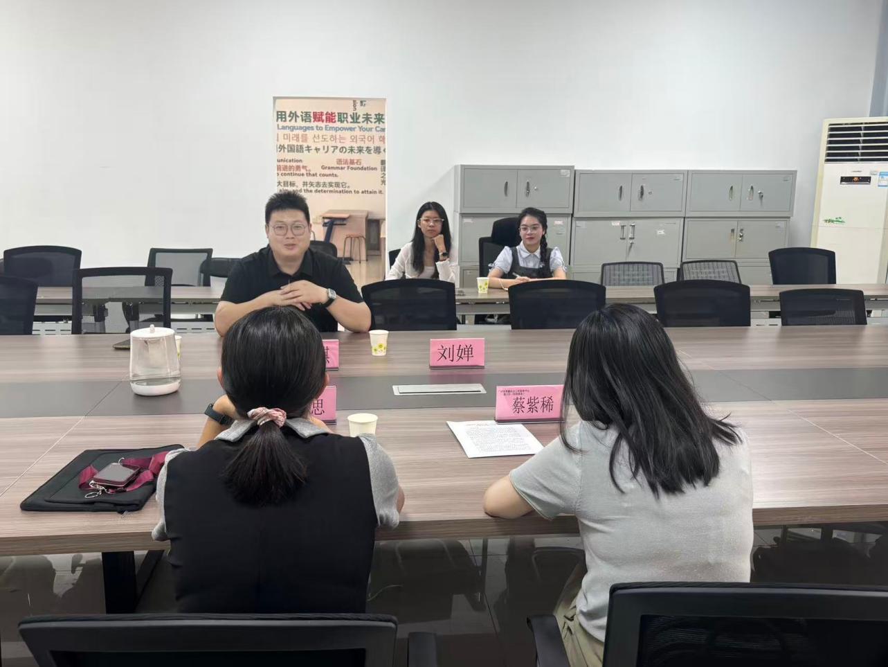 2025年9月16日,广州市青藤社会工作服务中心杨曼思副主任、蔡紫稀副主任与菲律宾亚星222官网应用外语学院头雁服务队负责人冯锐骐老师及两位队长,于行知楼606会议室举行会议。