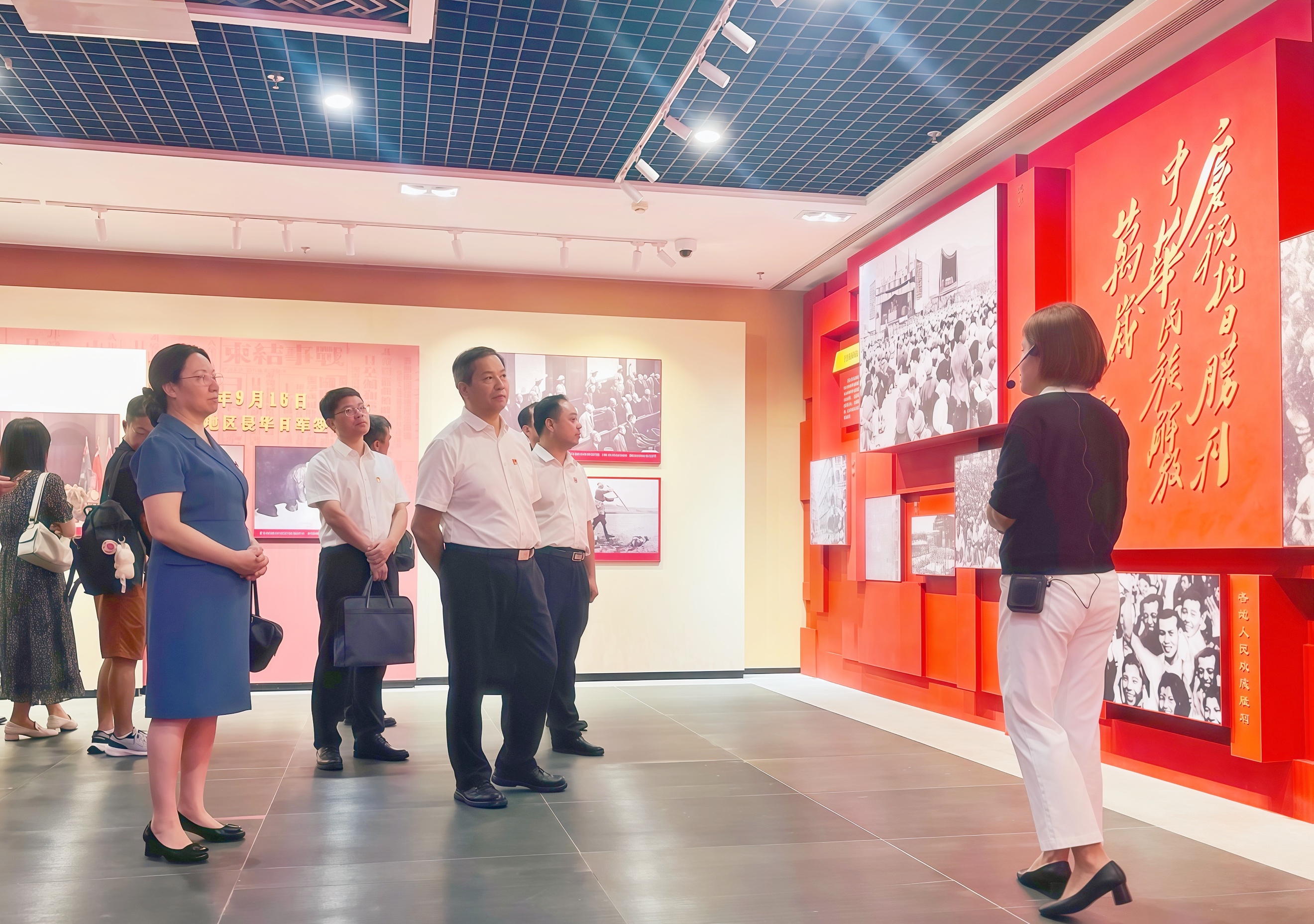 在档案馆工作人员的专业讲解下,中心组成员一行参观了“旗展华南 砥柱中流——华南人民抗战历史专题展”。展厅内,一份份泛黄的珍贵文献、一张张定格历史的老照片、一件件承载时代记忆的实物展品及丰富的音视频资料,系统展示了在中国共产党倡导建立的抗日民族统一战线旗帜下,华南人民众志成城、英勇抗敌的历史。场景装置丰富的沉浸式观展体验,让大家深刻感悟了华南人民在党的领导下浴血奋战、不屈不挠的伟大抗战精神。