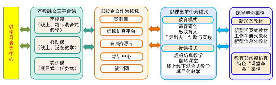 针对学生个性化、泛在化、终身化学习需求,专业群深化产教融合,通过“数智赋能”开发教学资源,实现“理虚实一体化”。①“产教融合”建设“体系化”课程资源,校企合作制定对接国家、行业标准的专业群人才培养标准,将思政引领、知识传授、技能培养有机结合,产教融合,将企业项目案例、资源等转化为教学资源;遵循“一体化设计、结构化课程、颗粒化资源”建设思路,推进专业教学资源库建设。②“校企合作”推广“理虚实”教法创新,依托智慧职教等数字化在线教学平台,通过“模块化教学”“项目化教学”VR/AR支持的“理实虚一体化教学”“线上线下混合式教学”开展课堂革命;解决“三高三难”,建设认知型、综合型和探究型三阶段的虚拟仿真实训课程,将复杂多变、难以再现的外业实训任务搬至室内虚拟仿真环境中进行,实现“云中测绘”平台虚拟仿真资源的有效共享。