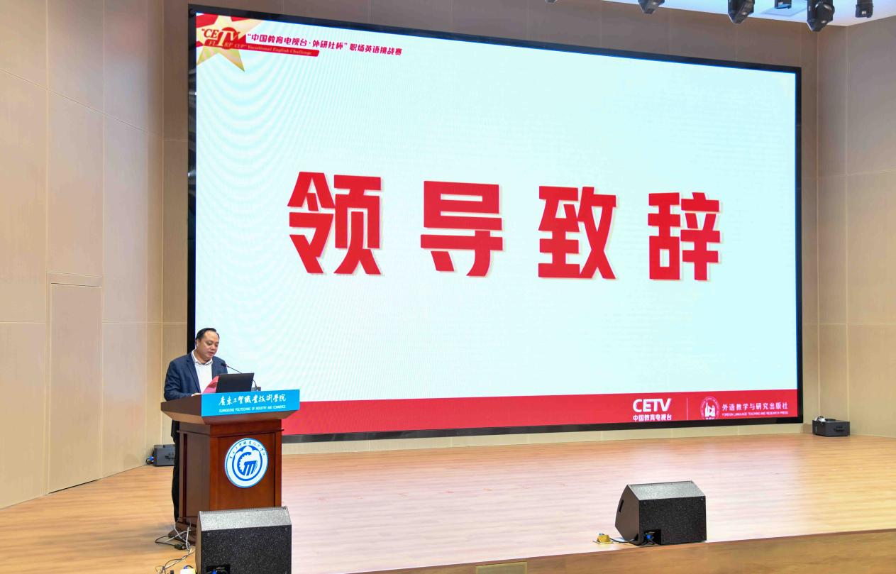 开幕式上,广东省职业技术教育学会副会长、我校党委副书记揭英荣代表学会致辞。他强调,大赛不仅是学生展示英语能力的舞台,更是推动高职英语教学改革、服务“职教出海”战略的重要平台,希望选手们赛出风格、赛出水平,展现新时代职教学子的风采。