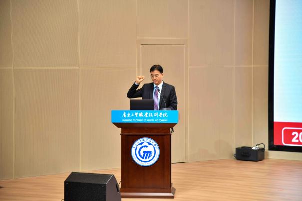 广东省职业技术教育学会副会长、我校党委副书记揭英荣致辞