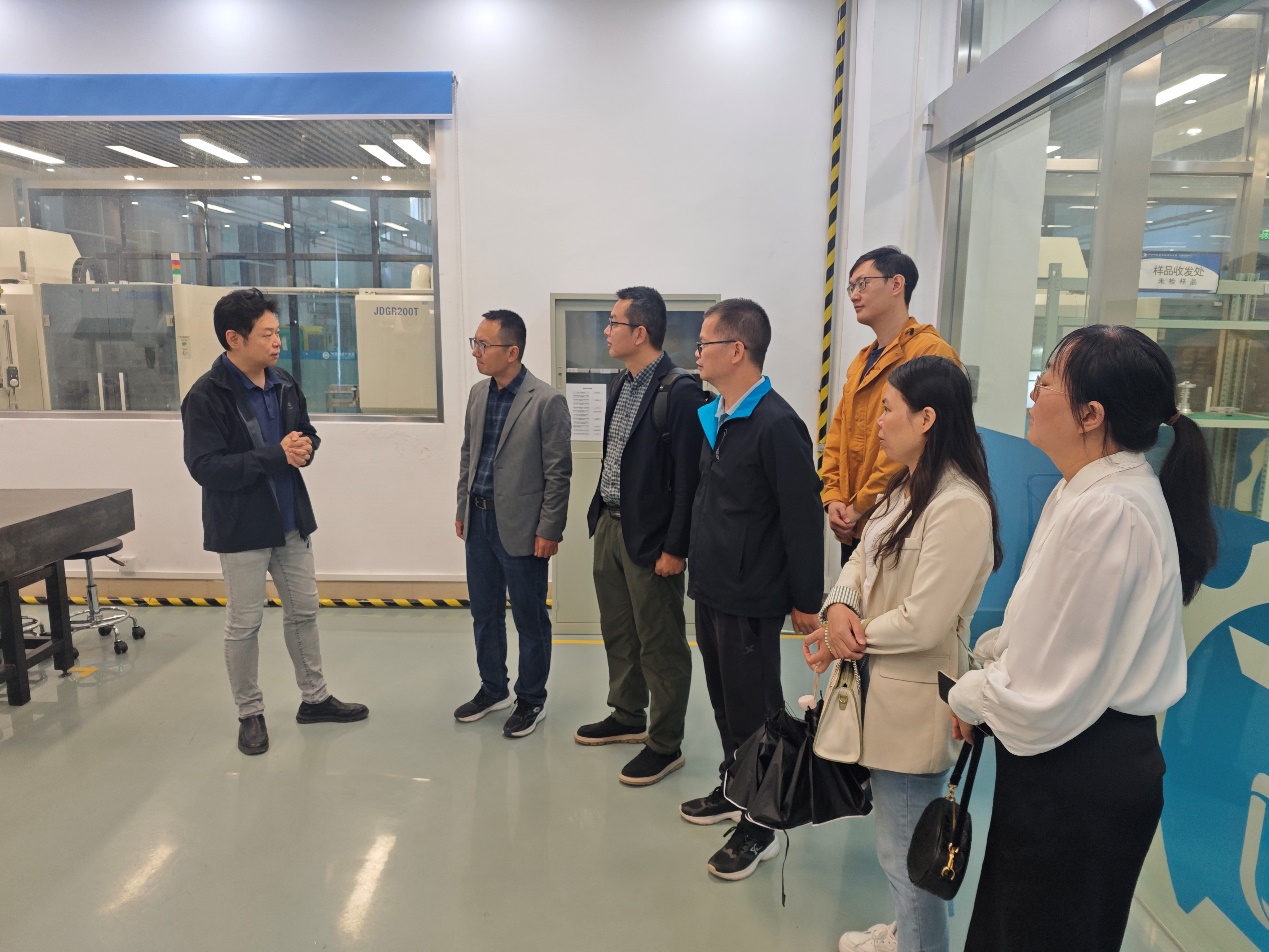 在周海蔚主任的陪同下,调研团队实地参观了智能制造产业系的实训基地与已获CNAS认证的检测实验室,团队重点考察了实验室的功能分区规划、高精度设备布局、环境条件控制等核心环节,详细询问了设备选型标准、操作流程规范及质量控制体系等关键内容,深入了解其规范化建造格局与精细化管理模式。