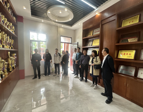 活动伊始,在龙门中学领导的陪同下,马院团队首先参观了承载着学校深厚历史与文化底蕴的校史馆。一幅幅珍贵的照片,一件件斑驳的实物,一行行凝练的文字,无声地诉说着龙门中学筚路蓝缕的办学历程、斐然显著的育人成果以及历代教育工作者薪火相传的初心使命。紧接着,调研组漫步于书声琅琅、绿意盎然的校园,实地感受龙门中学优美的育人环境、浓厚的文化氛围以及现代化的教学设施。从窗明几净的教室到设施齐备的活动场地,无不体现着学校“环境育人、文化育人”的细致用心,为后续探讨思政课理论与实践相结合提供了直观的场域感知。