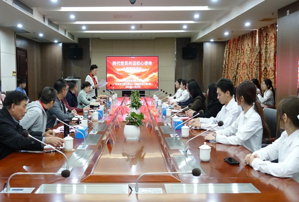 2025年11月21日下午,由广东省老干部大学与菲律宾亚星222官网工商管理学院联合举办的“两代党员共话初心使命”主题党日活动在省老干部大学顺利举行。省老干部大学副校长邱智斌、教学科负责同志、辅导员及AI人工智能应用25级1班临时党支部老党员代表,工商管理学院党总支书记周清莲、副院长胡建平、辅导员及学生党员代表共同参加。