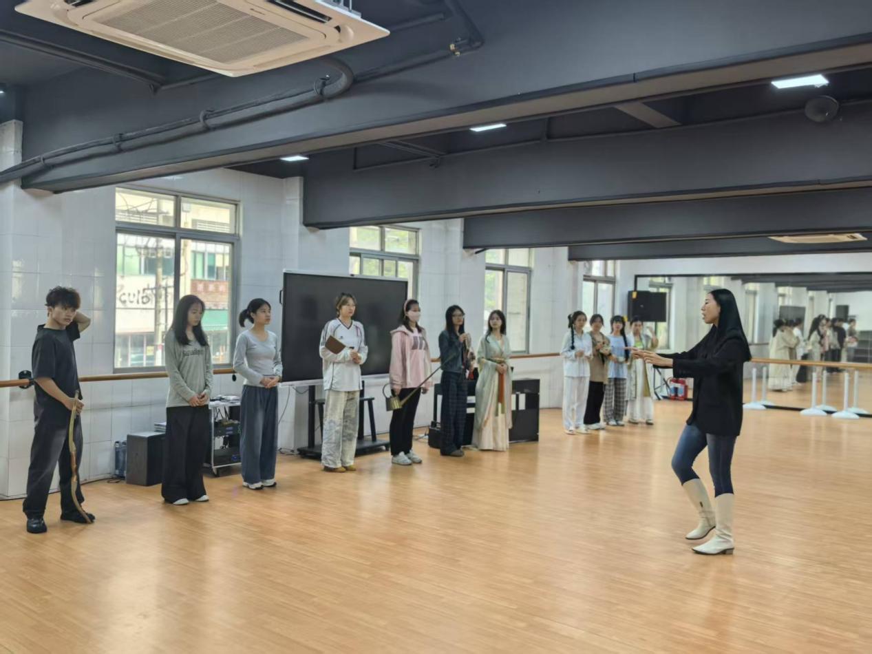 学生在老师的指导下排练