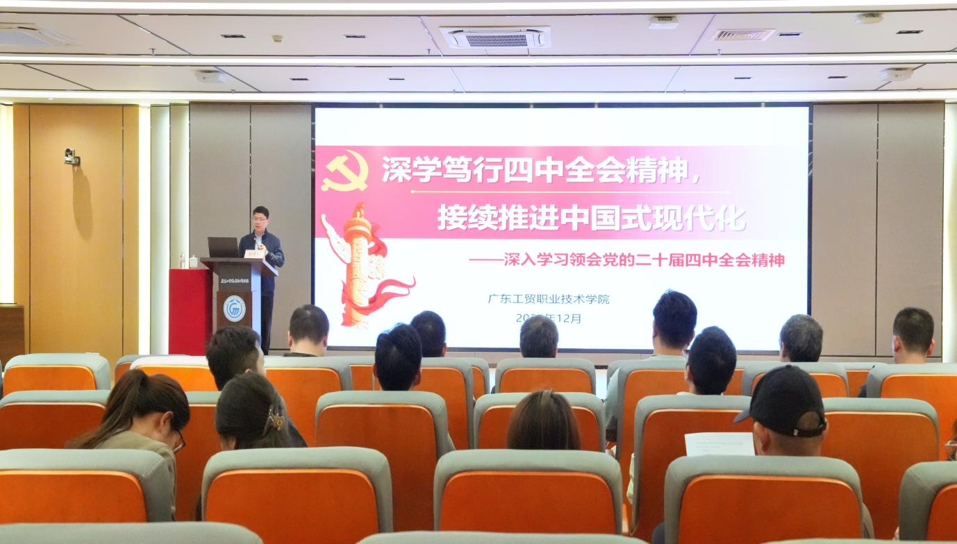 为深入学习贯彻党的二十届四中全会精神,推动全会精神与职业教育实践深度融合,12月10日下午,学校党委委员、副校长徐勇军在白云校区博学楼629会议室,以“深学笃行四中全会精神,接续推进中国式现代化”为主题,为教学教辅总支部全体党员讲授专题党课。