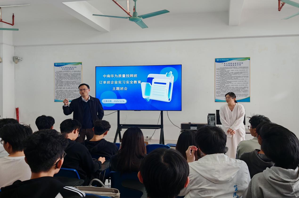 汽车工程学院中南华为质量技师班学生即将奔赴企业进行为期1个月的实习,为切实强化学生在企业实习的安全意识,保障实习工作安全有序进行,2025年12月16日,学院召开了中南华为质量技师班企业实习安全教育主题班会。汽车工程学院副院长王锋、班主任黄美红、林诺怡与质量技师班全体同学参与了此次班会。