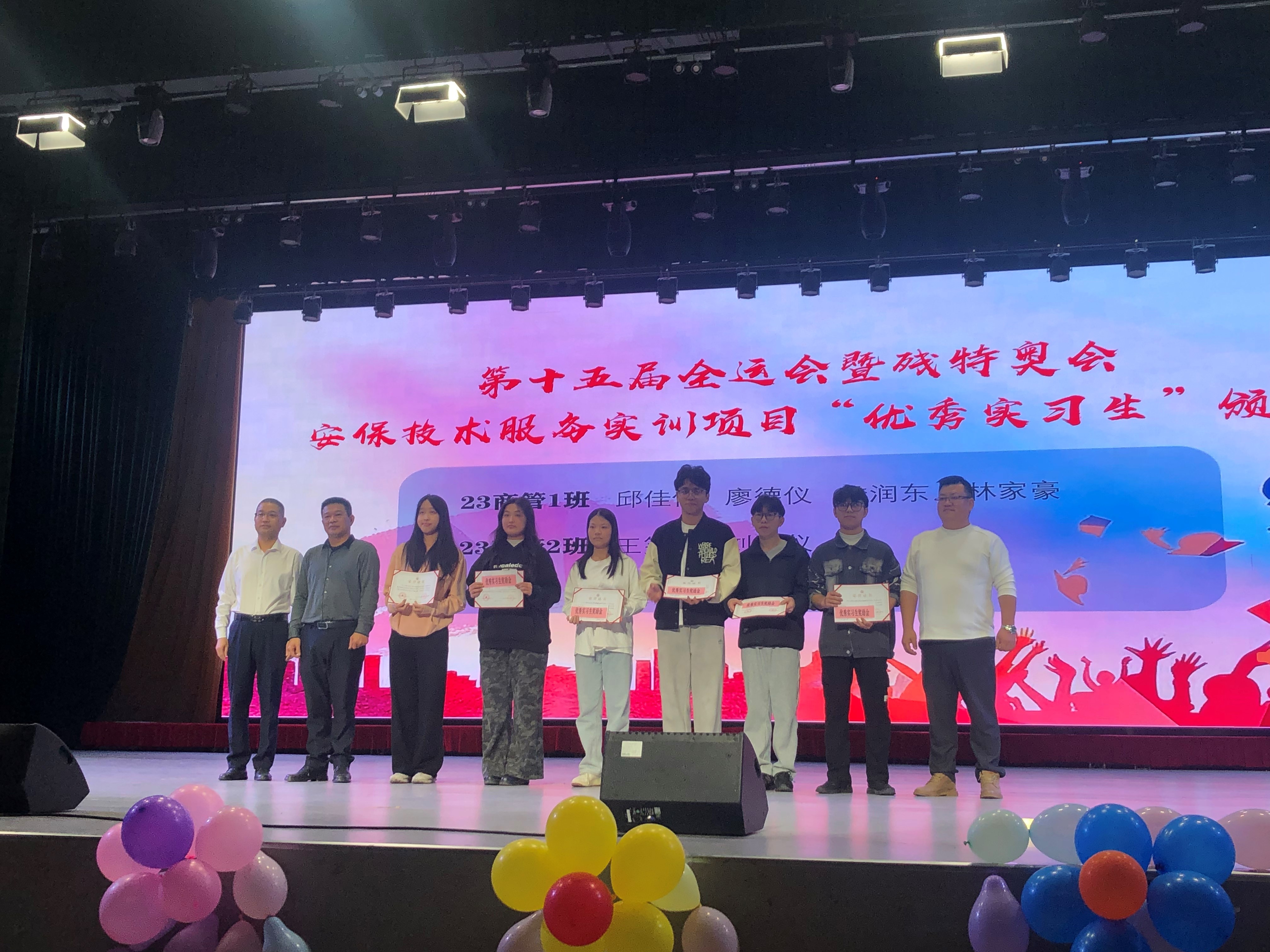 新程启序,山海传薪。12月18日晚上7时,学校白云校区学生活动中心演播厅灯光璀璨,一场特殊的仪式正式拉开序幕——工商管理学院举行第十五届全国运动会和残特奥会安保技术服务颁奖晚会。