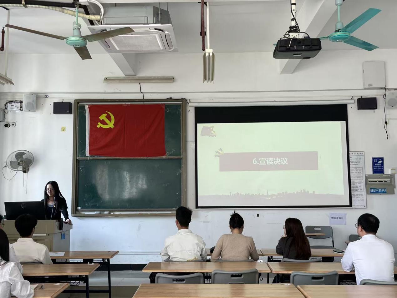 接着,与会党员就发展对象能否入党进行了充分讨论,有表决权的正式党员以无记名投票的方式对发展对象能否入党进行了表决。经过投票和计票统计,学生第一党支部书记詹琪琪宣布了表决结果:一致同意接收郑宇瀚、莫沐霖、何成越、周佳锐、邓慧珊、曾芷珊、吴泽敏等7位同志为中共预备党员。全场响起了热烈的掌声,向新发展的预备党员表示祝贺。